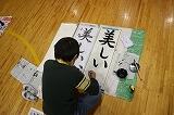 3年生は初めての書きぞめ競書会です。体育館で他の人と間隔をあけながら集中して取り組みました。静まり返った体育館で集中して取り組みました。