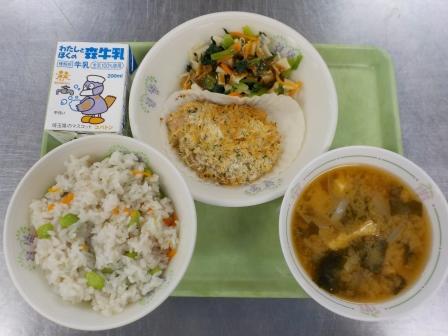 今日の給食は「枝豆ごはん・牛乳・鶏肉の香味
