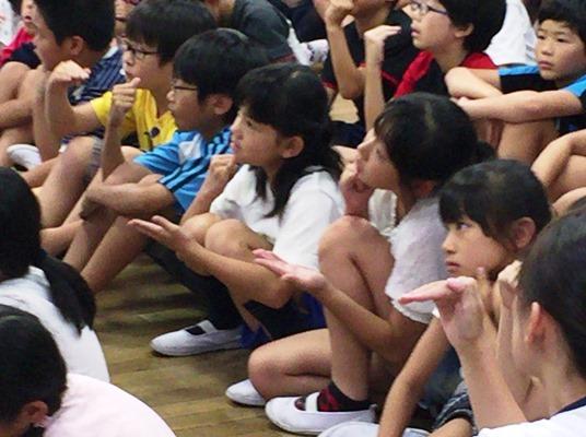 今日は、4年生が手話体験をしました。春日部市の社会福祉協議会の方と聴協サークルの3名の先生をおよびして、手話について学びました。子どもたちは真剣に聞き、考え、学んぶことができました。手話についても、手話が世界共通ではないことなどわからないことばかりでした。
