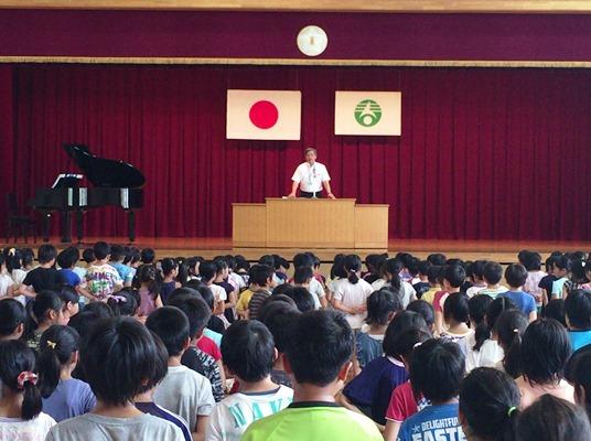 今日は、武里小学校・第1学期・終業式が行われました。校長先生からは、「4月に立てた目標が達成できましたか?」と“きらり賞”のお話がありました。一人一人の児童が、自分の立てた目標に向かって頑張れた1学期でした。児童代表の児童は、1学期を振り返って、目標に向かって頑張ってきたこと、2学期も努力していきたいとの前向きな話を聞くことができました。生徒指導からは、携帯スマホのトラブルやマナーのお話、お金の扱いについて、公園や道路での遊び方についてのお話でした。最後に、南小・合唱部のさわやかな歌声を聴くことができました。