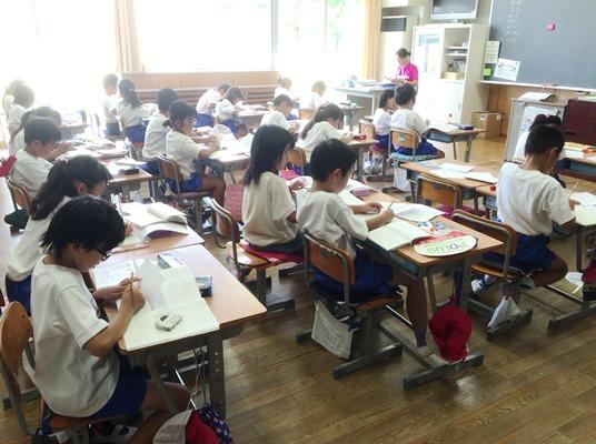 朝から南小の児童は元気に校庭を走っています。まだまだ、暑い日が続いています。水分補給や走った後の健康管理にも気をつけてください。走った後は、気持ちを切り替えて、教室で漢字練習をしています。どの子どもも集中して行っていました。