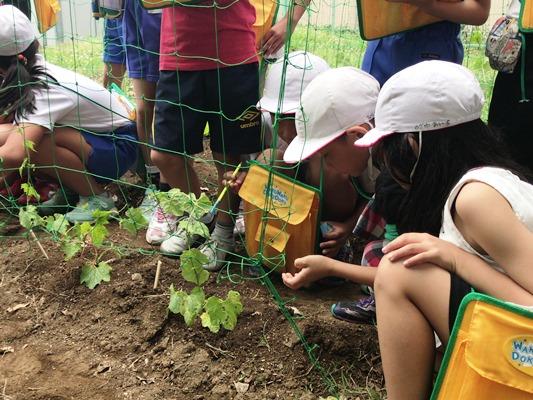 昨日は、4年生が学校ファームのヘチマの観察をしていました。先日植えたヘチマの苗がどのように育っていくか、観察用紙にていねいにスケッチをしていました。すでに黄色い花をつけているものもありました。これからぐんぐん大きくなっていくことでしょう。楽しみですね。