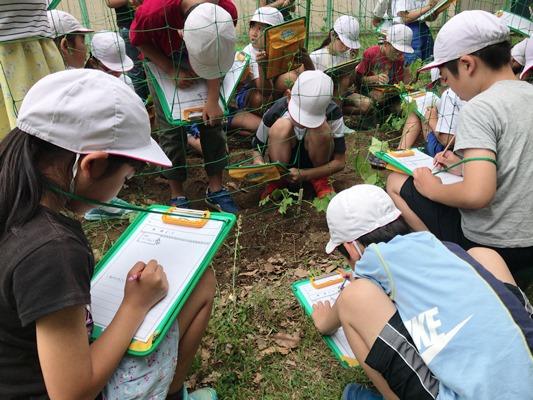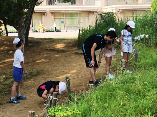 今日は、生態系保護協会春日部支部のみなさんをお招きして、どんぐり山の観察を行いました。林と池と日向と木陰、環境の違う場所で植物や昆虫の違いなどもわかりました。チョウやトンボ、バッタなどを捕まえて名前を調べました。いろいろな種類の動植物がいて、新たな発見もたくさんありました。