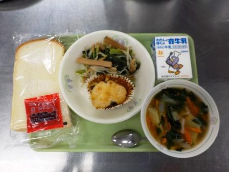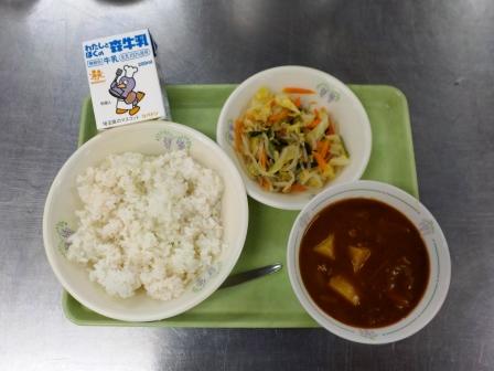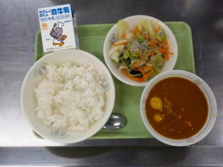 ルウ)・牛乳・ちんげん菜とじゃこのサラダ」です。