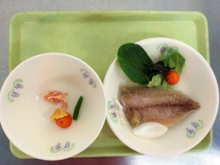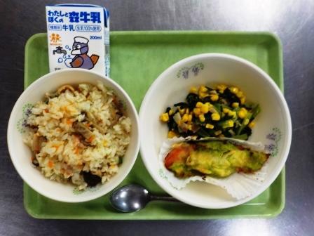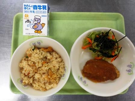 今日の献立は「こぎつねごはん・牛乳・あじの