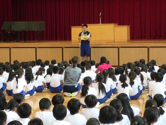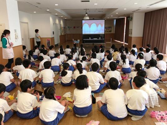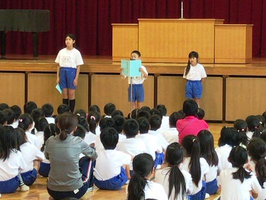 図書主任からは、今月の生活目標『雨の日に合った生活をしよう!』というお話がありました。「雨の日に、読書をすると静かに楽しく過ごせます。」というお話がありました。