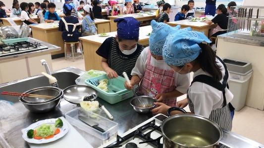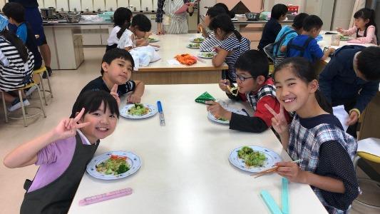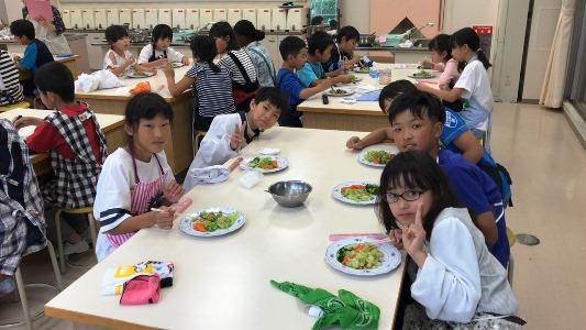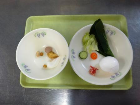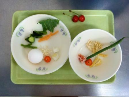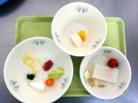 今日は、家庭科で「カラフルゆで野菜サラダ」を作りました。ドレッシングも工夫して作りました。みんな美味しくいただきました。野菜の色がカラフルですね。