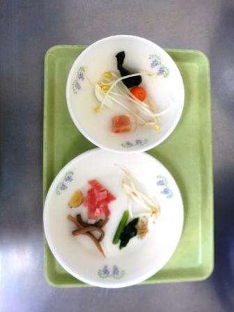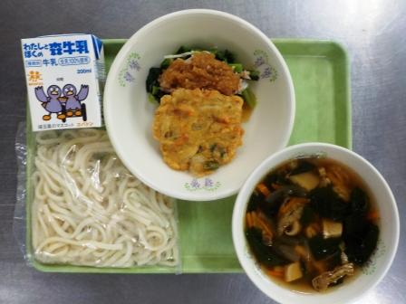 今日の給食は「地粉うどん、五目うどんの汁・牛乳・