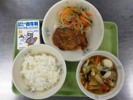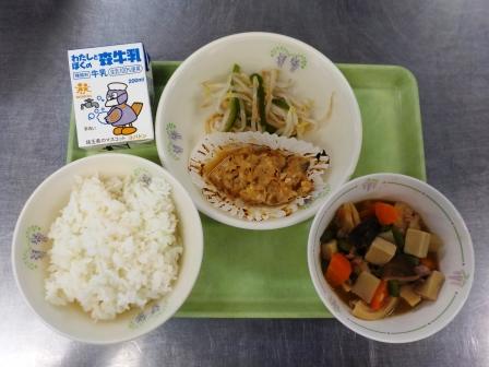 今日の給食は「ごはん・牛乳・豚肉のオイスター