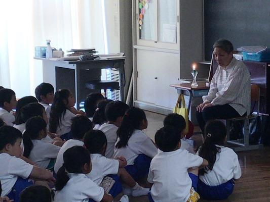 今日は、「春日部おはなし会」のみなさまによる「お話し会」がありました。物語に引き込まれる学級があったり、笑いにつつまれる学級があったりと、子どもたちは、このお話し会を楽しみにしています。