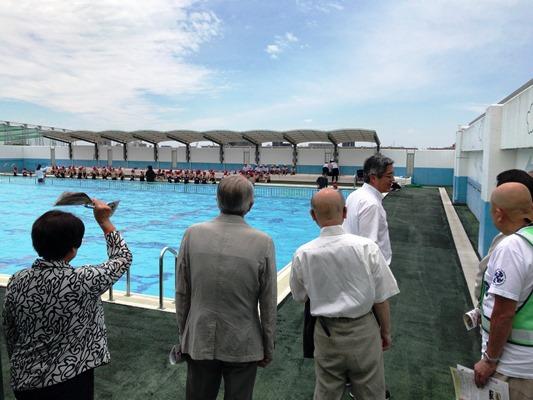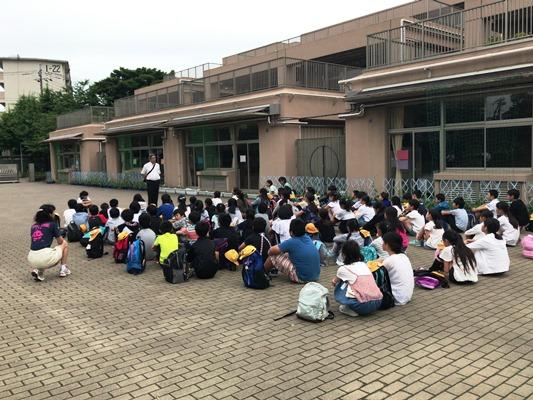 今朝は、プール開きがありました。校長先生からは、校長先生が小学生の時、泳げなくて、あきらめずに練習して泳げるようになった話を聞きました。つぎに、代表の児童からは、プール学習の今年の目標を発表してもらいました。最後に、体育主任より、プール学習のやり方と注意点を聞きました。安全に気をつけて、目標を決めて取り組みましょう。