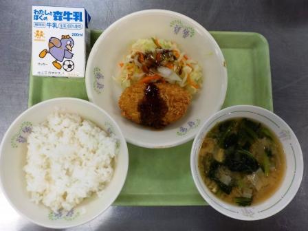今日の給食は「ごはん・牛乳・大豆コロッケ・