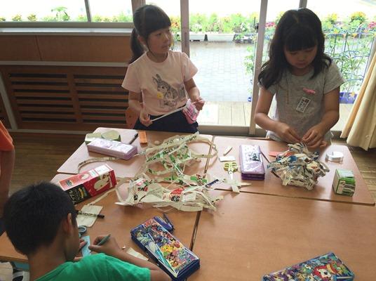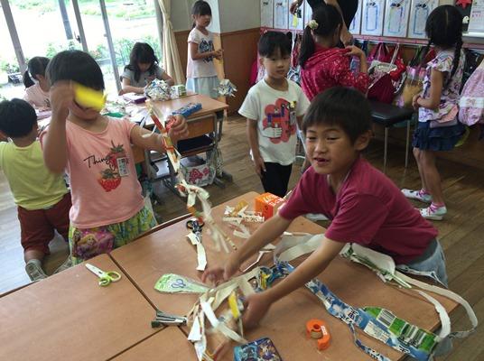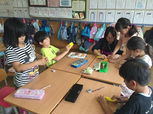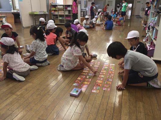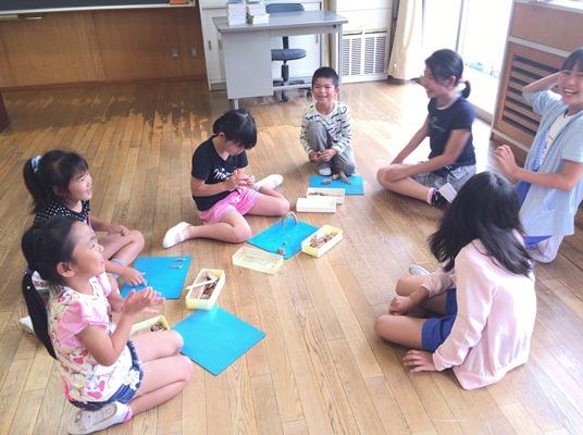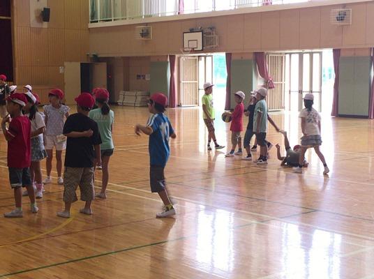外が雨で運動ができなかったので、室内で異学年交流がありました。違う学年の子どもたちが、それぞれいろいろな遊びを一緒に行いました。お兄さん、お姉さんに教わりながら、それぞれの場所でゲームをしたり、一緒に運動をしていました。上級生から学ぶことがいっぱいありましたね。
