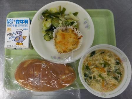 今日の給食の献立は「ごはん・牛乳・ゼリーフライ・