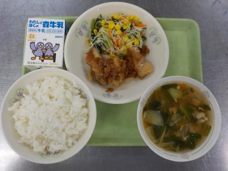 今日の給食は「ごはん・牛乳・油淋鶏(ユーリンジー)