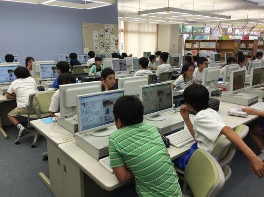 コンピュータ室では、6年生が春日部市のことについて、コンピュータを使って学習していました。コンピュータを使って検索すると、いままで知らないことがいっぱい情報として出てきます。使い方によっては、本当に便利なツールだと思いますが、いろいろな人がいる、知らない街に入っていくようなものでもありますので、使い方には十分気をつけてください。