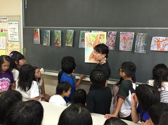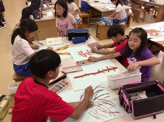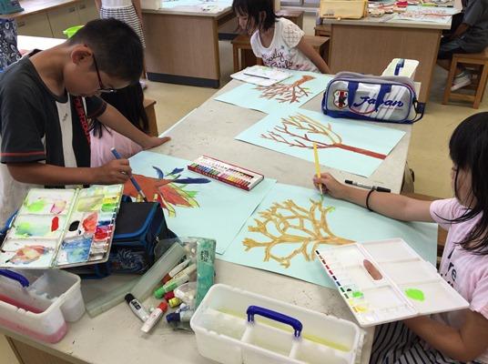 4年生の「樹を描く」というテーマで、図工室で熱心に絵を描いているクラスがありました。樹の特徴をとらえたり、色の塗り方などを工夫していました。自分の絵の中に入り込んで、絵にストーリーが出てくると楽しいですね。