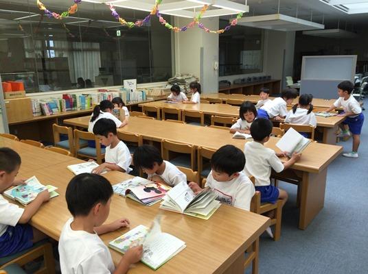 今日は、1年生が図書室で読書をしていました。図書室には、あらゆる分野の本がそろっています。雨が降って、外で遊べない時は、ぜひ図書室で本を探してみてください。きっと、気に入る本が見つかりますよ。