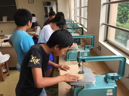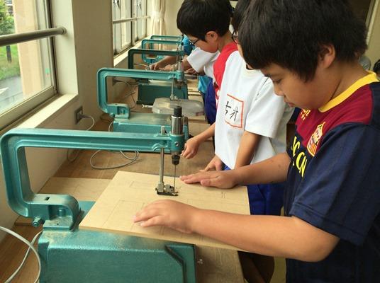 6年生が図工室で、板でパズルを作っていました。まず、どんなパズルを作るのかを決めて、板に作図をします。慎重に電動の糸のこぎりでカットします。平面から、立体的にパズルが組みあがっていきます。どんなパズルができるのか楽しみですね。