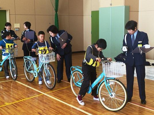 今日は、4年生の自転車免許制度講習が本校の体育館でありました。特に交差点や走り出しや停止するときの注意点を指導していただき、体験することができました。普段、何げなく乗っている自転車も細かな点を見過ごして乗っていたことがわかりました。これからは、自転車に乗るときには、加害者、被害者にならないように細心の注意をしたいものですね。