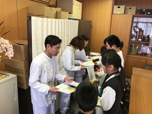 今日は、校長室で給食委員が日頃お世話になっている調理員さんに、感謝の気持ちをこめてお礼の手紙を渡しました。お礼の手紙は、全児童が書いたものです。今日は、代表して3名の調理員さんに渡しました。いつも美味しい給食をありがとうございます。
