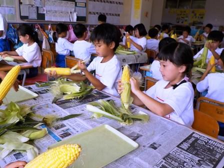 2年生・トウモロコシの皮むき体験