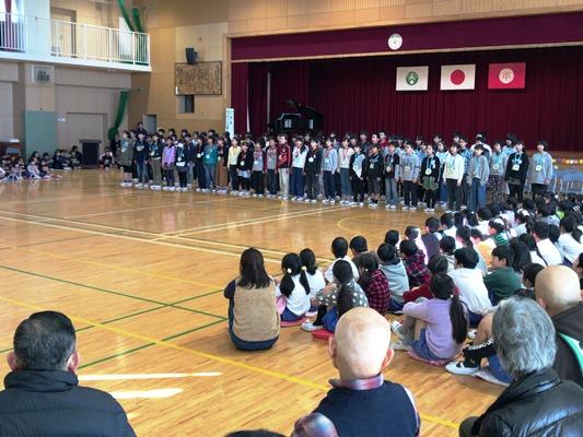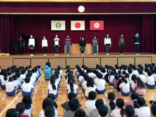 6年生・呼びかけと歌(見守り活動ボランティアの方々も参観しました)