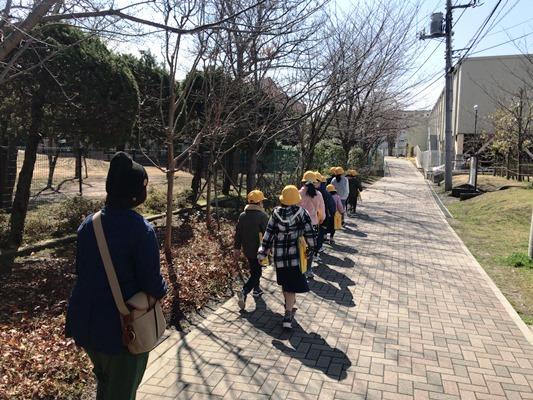 正門を出ると6年生の下校時刻で、数名の児童が帰るところでした。元気に挨拶を返してくれました。街路樹のサクラの蕾も大きく膨らんできました。6年生は、あと2日間の登校ですね。