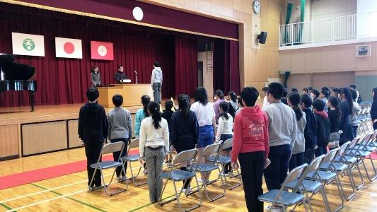 今日は、平成29年度・修了式でした。校長先生方からは、特に卒業生に対して、1年生から5年生が気持ちを込めて準備を進めたこと。式の中では、5年生が感動的に6年生を送り出せたことを高く評価してくれました。校歌も明るくさわやかに歌えました。春休みは、安全に気をつけて、準備を整えて新年度を迎えましょう。