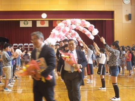 昨年度までお世話になった先生方が来校され、離任式を行いました。児童代表がみんなで書いたお手紙と花束を渡し、全員の先生方からお話しをいただきました。
