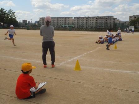 今月の体育朝会は、全クラス対抗の「折り返しリレー」を行いました。各学年の距離が違うなかでリレー形式で往復し、回数を競うものです。1位は4年1組でした。全クラス対抗なので大変盛り上がりました。
