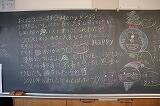 今日は2学期最終日です。教室では子供達を迎えるため、黒板にメッセージが書かれています。