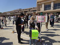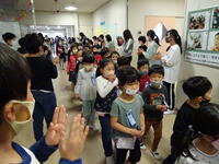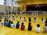 拡大防止の観点から、一堂に会することはやめ、2年生から5年生が、体育館まで