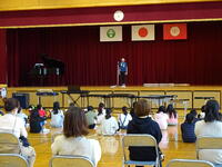 拡大防止の観点から、一堂に会することはやめ、2年生から5年生が、体育館まで