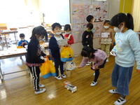 2年生が生活科の「作って遊ぼう」で1年生を招待して、自分の作った動くおもちゃで遊んでもらいました。