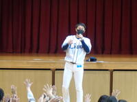 12月13日(火)に、夢と豊かな心を育む講演会を開催しました。6年生を対象に、埼玉西武ライオンズ アカデミーコーチの鬼﨑裕司様をお迎えし、夢を目指すことの大切さや心構え等の講演を行っていただきました。講演後は、ボールを投げるコツなどを教えていただき、6年生もコツを意識しながら実際にボールを投げるなど楽しい時間を過ごしました。鬼﨑コーチは、埼玉西武ライオンズや、東京ヤクルトスワローズでご活躍され、ドラフト3巡目で指名されるなど、華々しい経歴をお持ちですが、これまで挫折がたくさんあったこと、苦労したことなどの経験を話してくれました。6年生も夢を追う中で、挫折することもあるかもしれませんが、鬼﨑コーチのように、自分に自信をもってがんばってくださいね!鬼﨑コーチ、ありがとうございました。
