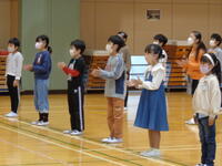 12月23日(金)に終業式が行われました。校長先生からは79日間の2学期に行われた大きな行事を通して、みんなが成長したこと、冬休みの過ごし方についてのお話がありました。3年生代表児童による言葉では、自主勉強や逆上がりなど2学期に成長できたこと、3学期に頑張ることについての話がありました。生徒指導担当の先生からは冬休みの過ごし方についてのお話がありました。しっかりとお話を聞いて、元気に過ごしてくださいね。