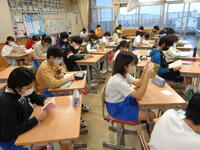 本日の業前活動は読書タイムです。今日のような寒くて天気が悪い日は、読書をする良い機会になります。先生たちも一緒に読書に取り組んでいます。武里南小は50冊読破を目標にしています。週末の親子読書も習慣になってきていると思います。ぜひこのまま続けていきましょう。