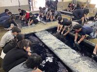 本日5年生は社会科見学に出かけました。羽生市の『中島紺屋』と、川口市の『SKIPシティ彩の国ビジュアルプラザ』で体験活動を行いました。中島紺屋では藍染め体験を行いました。日本の伝統手工業である藍染め。独特のにおいや、水の冷たさに驚きながら、一生懸命活動に取り組みました。