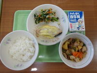 「ゼリーフライ、えごま和え、凍り豆腐の煮物」