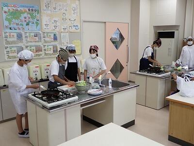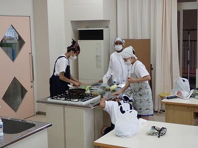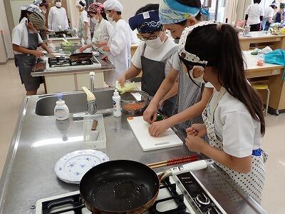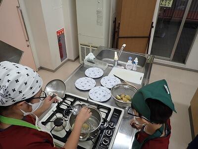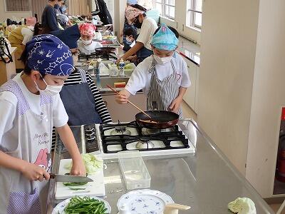 調理実習に慣れている6年生でしたが、コンロに火がつかず少し慌てる場面もありました。
