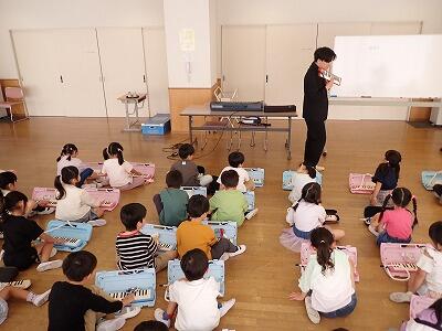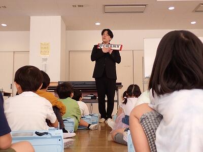 最初に指導者の先生から、鍵盤を使いコナンの主題歌を聴かせてもらいます。