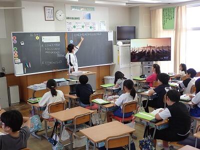 木曜日の外国語学習は、専科の先生に加えALTの先生と一緒に学習します。