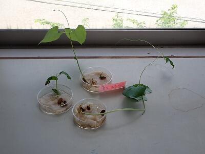廊下にある理科の発芽実験も、芽が大きくなっています。