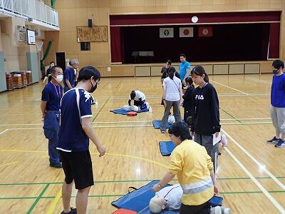 指導者の方のていねい説明を聞き、職員一人一人が実技を中心とした研修を受けました。