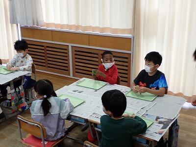 「できたかい?」と聞くと、「まだです」「めがねが曇っちゃう!」と、今日も一生懸命です。