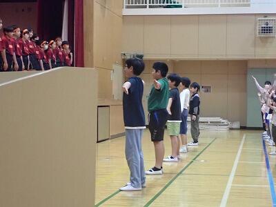 選手代表の誓いの言葉に続き、全校全員でエールを送りました。