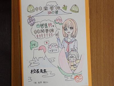 先日、代表児童がていねいに色塗りをしてくれたしおりを届けてくれました。