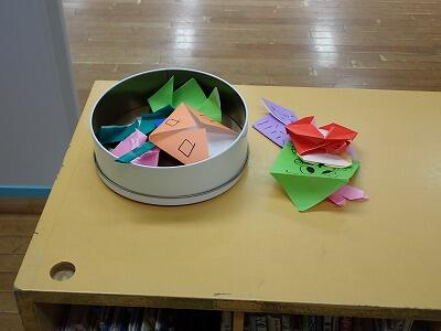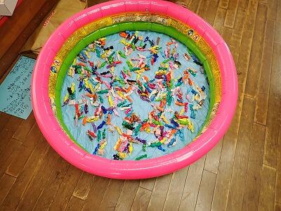 3の1の廊下に小さなプールが・・・・、中を覗いてみると折り紙でつくったキャンディーがいっぱいです。