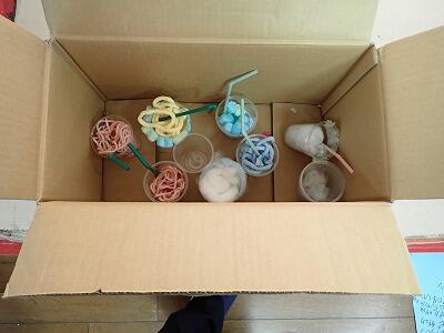 箱の中には、こちらもこども達が工作した手作りドリンクが入っています。